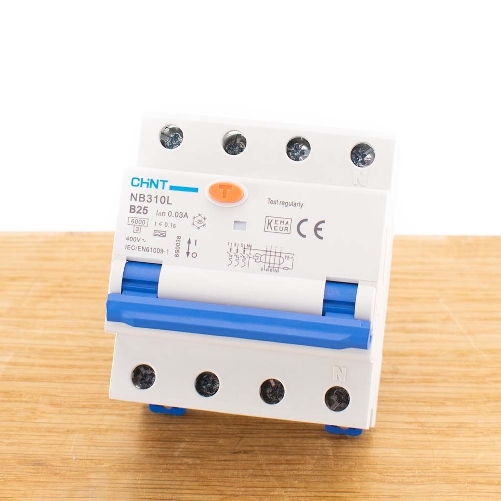 Deze versie van de Chint aardlekautomaat is bedoeld voor 3 fase en 25A.