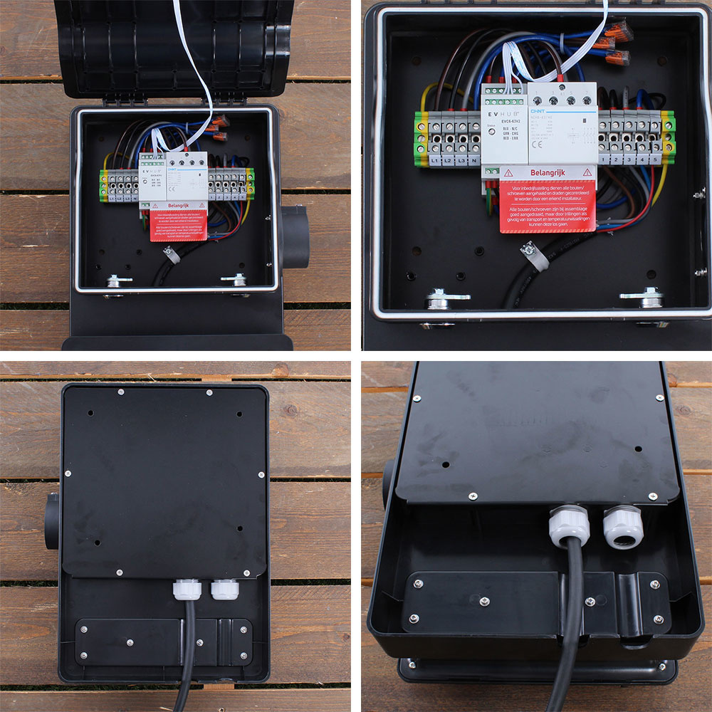 Dit laadstation kan zowel binnen als buiten geplaatst worden. Het laadstation is bestand tegen zonlicht en omstandigheden zoals regen en hagel.