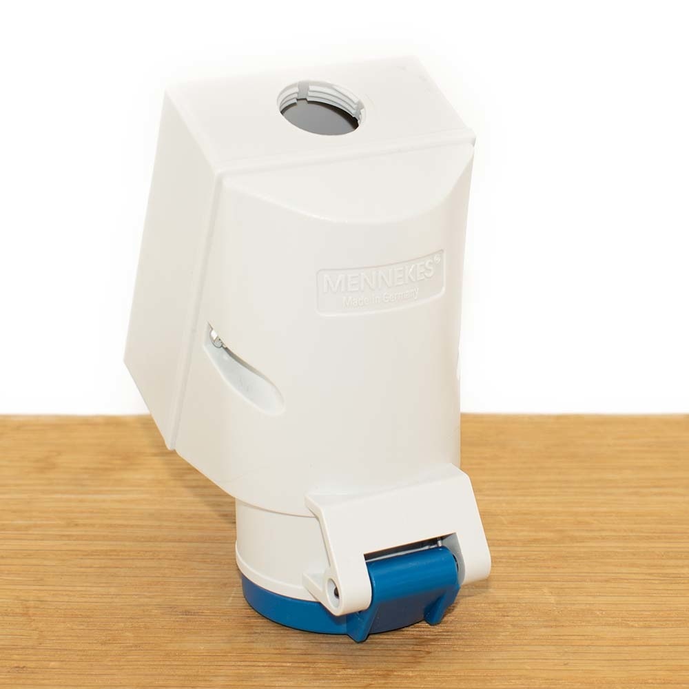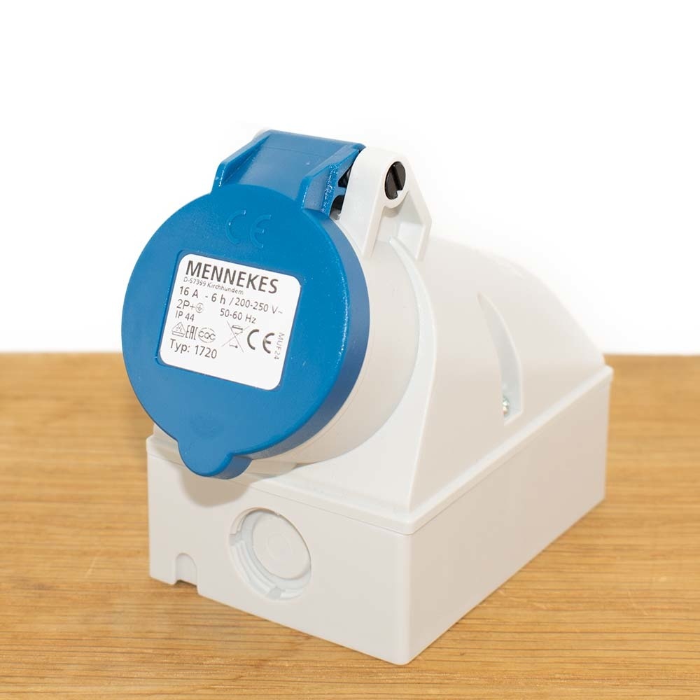 Met deze Mennekes Wandcontactdoos Type 1720 Twincontact (vrouwelijk) kunt u een robuust CEE stopcontact maken voor een 3 polige (2P+A) 230V 16A blauwe aansluiting/ stekker.