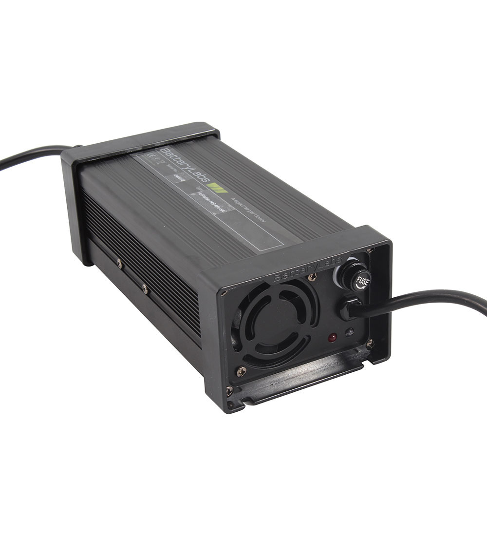De koeling van deze 12V acculader gebeurt via een mechanische ventilator/ fan.